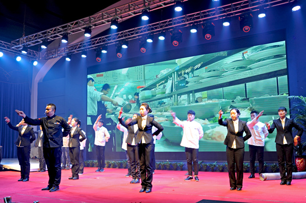 迪尼斯酒店開元店表演的團(tuán)隊風(fēng)采《眾志成城·從頭再來》是公司員工紀(jì)律、業(yè)務(wù)、才藝、禮儀與團(tuán)隊精神的綜合展示,獲得二等獎,獎勵2000元;