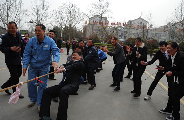 3月24日下午迪尼斯開元店在停車場舉行了一場面目一新的春季運(yùn)動會。此次運(yùn)動會主要有行政部、后廚餐飲部、客房部、工程部、保安部等各部人員參與角逐,比賽項(xiàng)目主要有單車慢行、三人四足、趣味接力和拔河等。